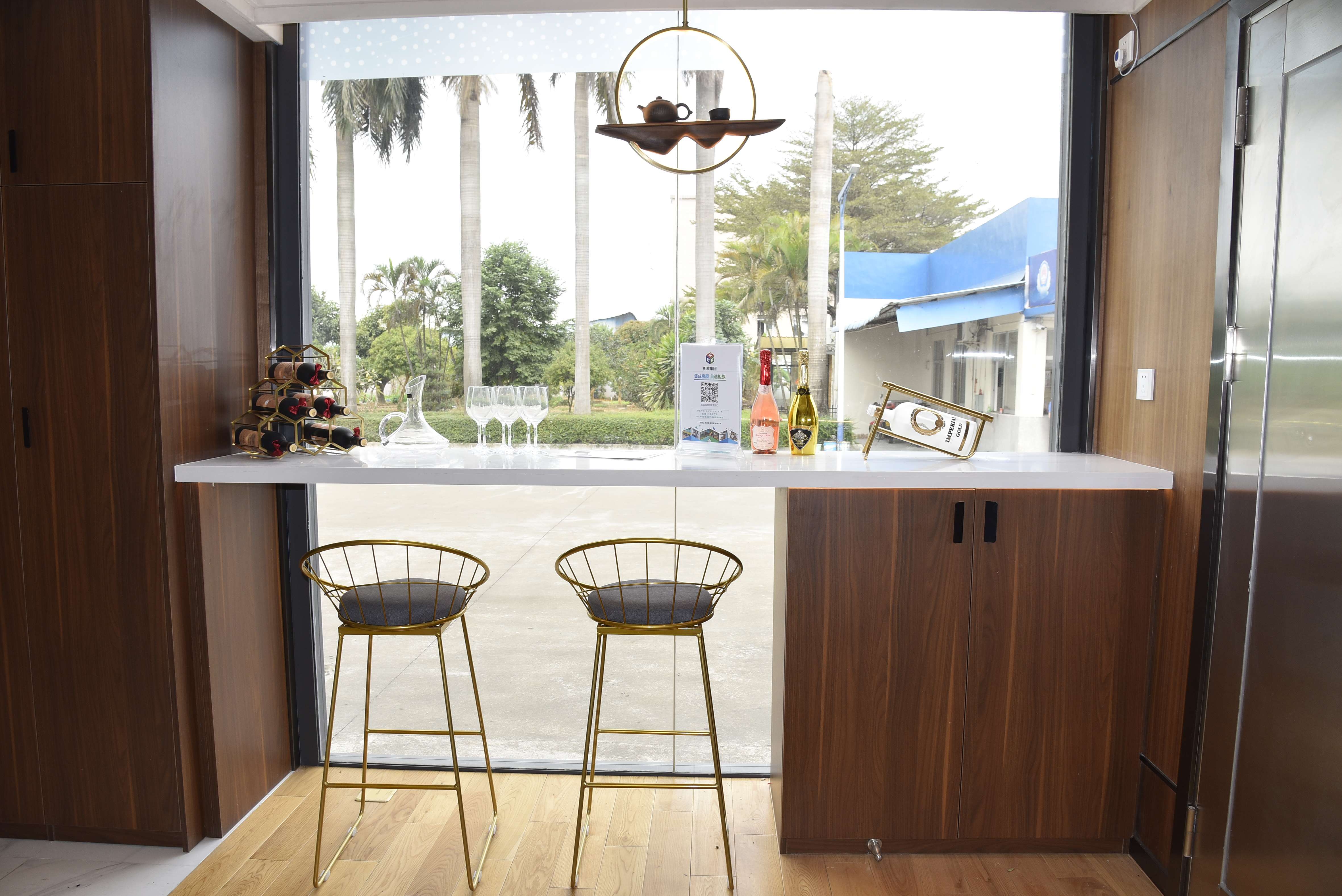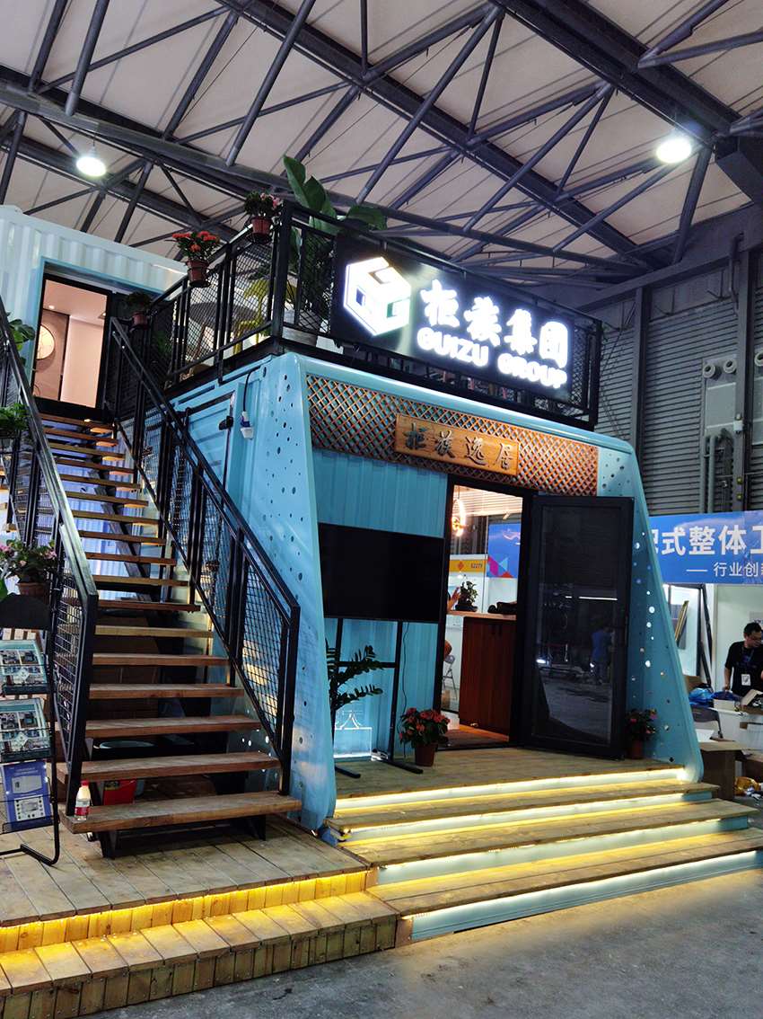 柜族本次參展的產(chǎn)品——逸海小筑位于E2裝配式建筑展區(qū)的2269展位,是一款以藍(lán)白為主色調(diào)、融入了水與波浪元素的海洋風(fēng)集裝箱別墅。該產(chǎn)品的設(shè)計(jì)理念為環(huán)保、舒適、旅居,以不破壞場地與自然環(huán)境為出發(fā)點(diǎn),整個(gè)產(chǎn)品為工廠預(yù)制完成,地面抬高3個(gè)臺(tái)階,有效隔離了地面的潮氣。箱子著力點(diǎn)有圓柱支撐,底座圓盤加大了受力面積和整體平衡性。箱子整體分為一、二層兩個(gè)模塊,用吊機(jī)和平板車整體裝卸運(yùn)輸,在選好的平整地面直接擺放就可以入住使用了。