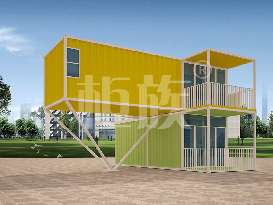 上下兩層集裝箱交錯(cuò)排列,既能拓展公寓使用面積,又能個(gè)性化設(shè)計(jì)公寓外觀。整體色彩清新明亮,充滿現(xiàn)代化設(shè)計(jì)風(fēng)格。