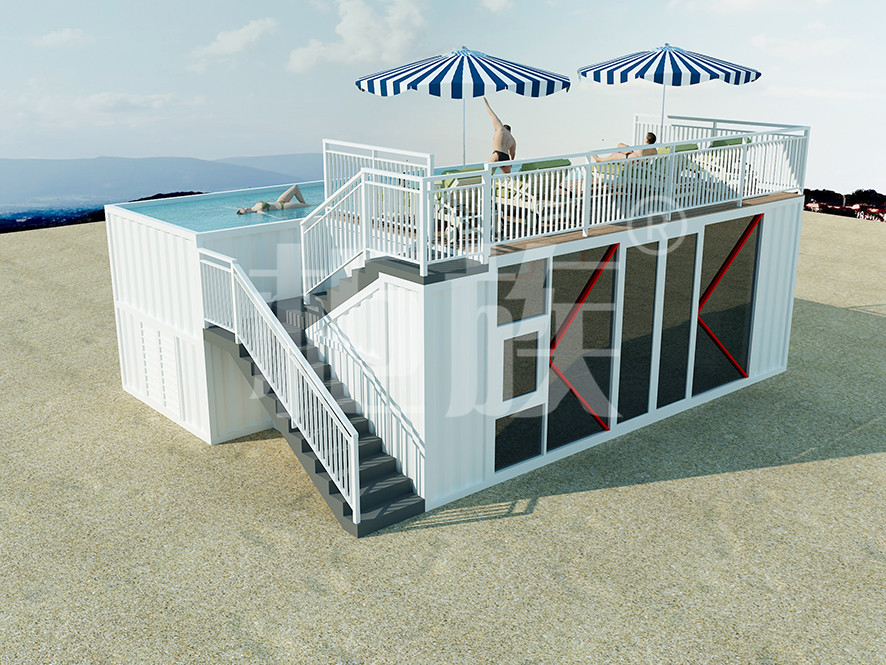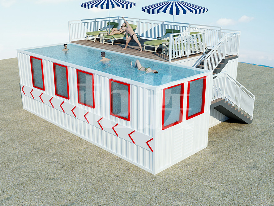 集裝箱泳池可以完全在工廠預(yù)制完成,占地小、造價低,適合庭院、海邊的度假地、以及其他公共游樂場所使用。